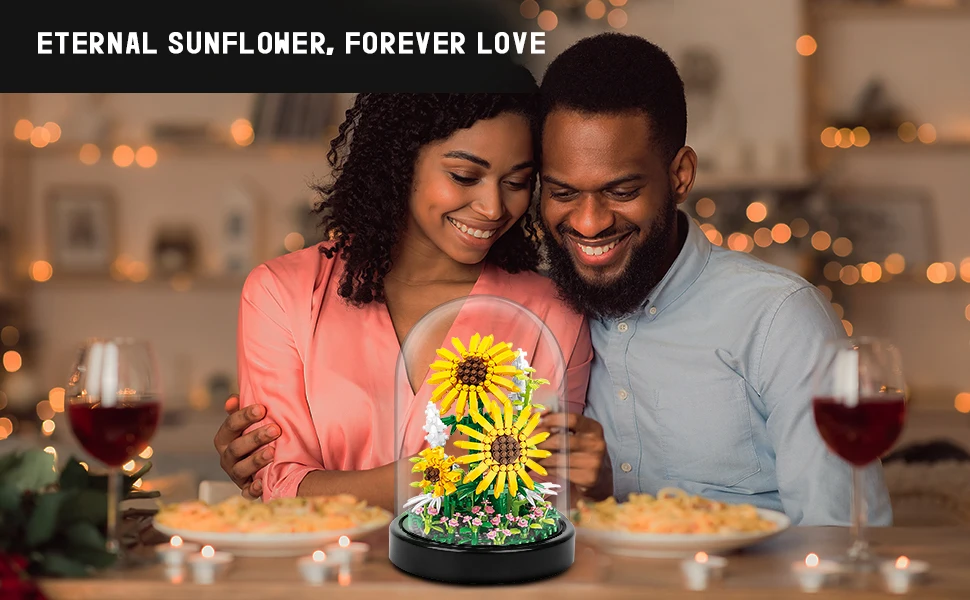 LED Flower Bouquet Building Kit - Red Roses Botanical Blocks for Valentines Gift